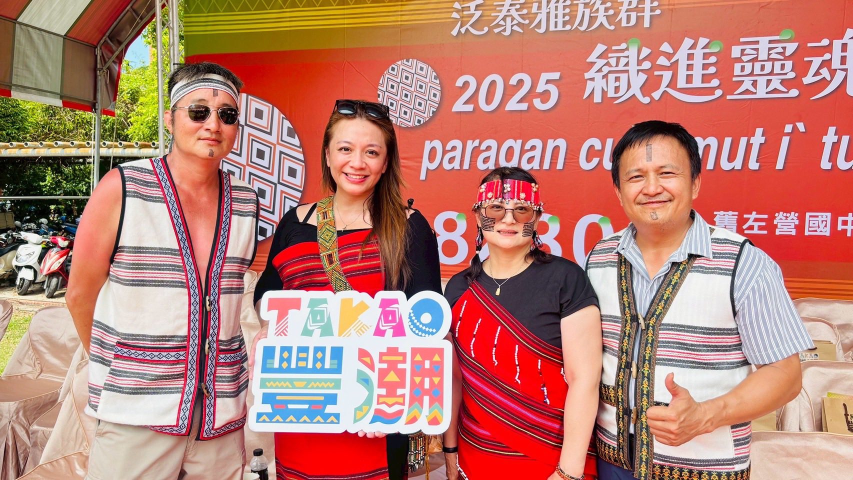 泰雅、賽德克、太魯閣三大族群一起把文化搬上舞台!亮點展演,三首泰雅樂曲串聯,全場族人手拉紅白布,在舞步交錯中「織」出祖靈之眼,那一刻真的像看見一幅活的織布畫,族人的團結與文化力量在舞台上盡情綻放。 中央原民會副主委谷縱·喀勒芳安、高雄市府...