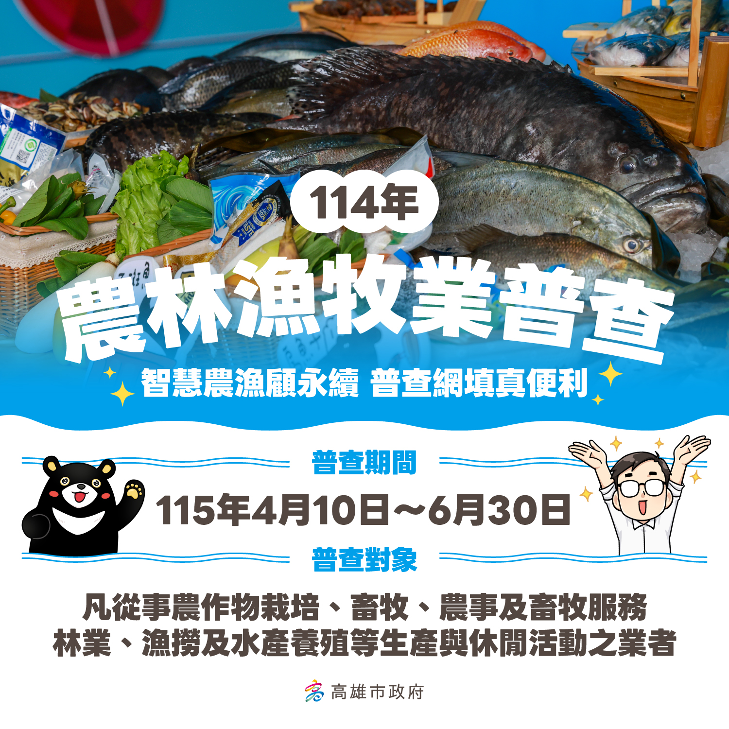 【轉知】本市為順利推動「114年農林漁牧業普查」宣導作業,活動即日起至115年6月30日止,請參閱。 |